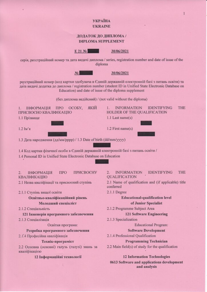 Диплом молодшого спеціаліста звичайного зразку![]() |