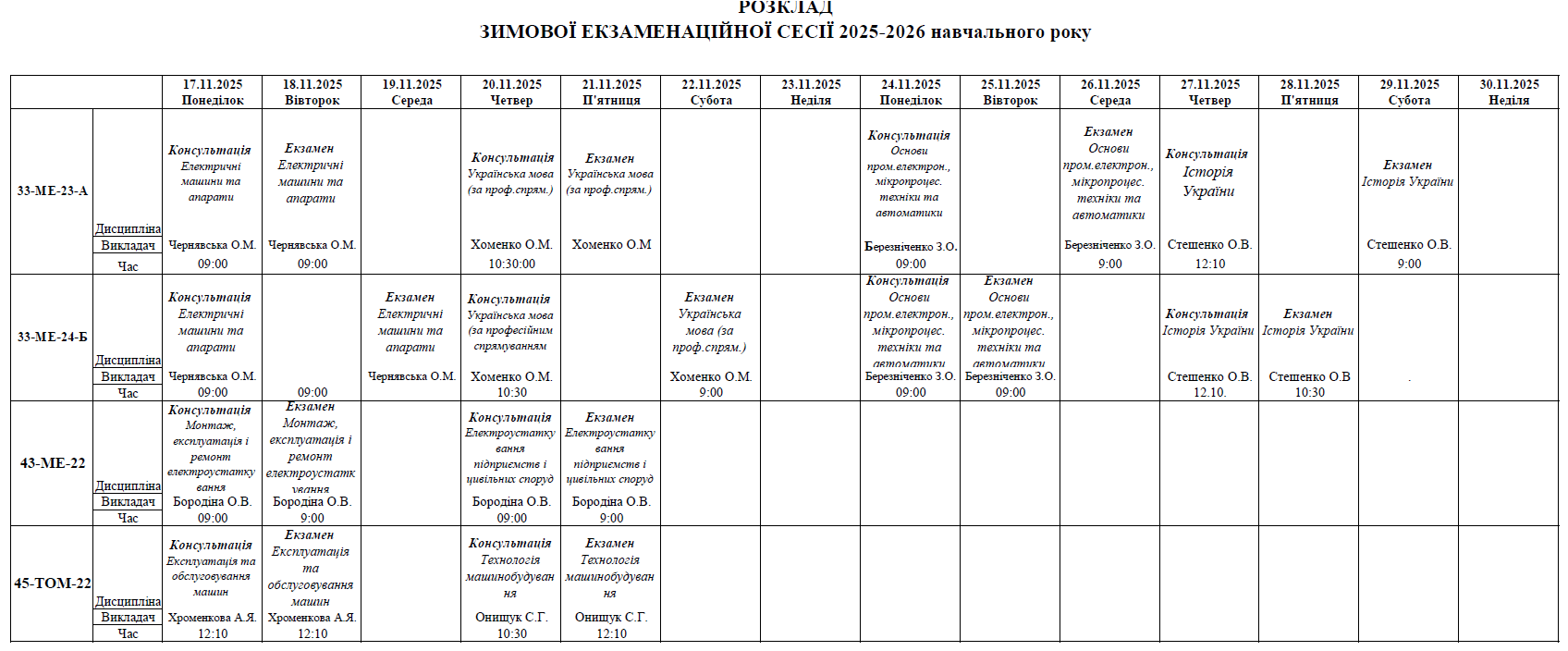 Розклад екзаменаційної сесії на І семестр 2024/2025 н.р.