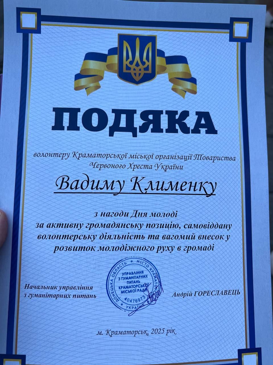 💙Особливо приємним моментом стало те, що органи міської влади відзначили волонтерів почесними подяками. Серед них був наш студент Вадим Клименко.