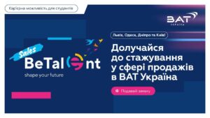 Ділимося з вами чудовою можливістю для студентів, які мріють про кар’єру у сфері продажів. Компанія BAT Україна запрошує взяти участь у літньому оплачуваному стажуванні – Be Talent Sales.